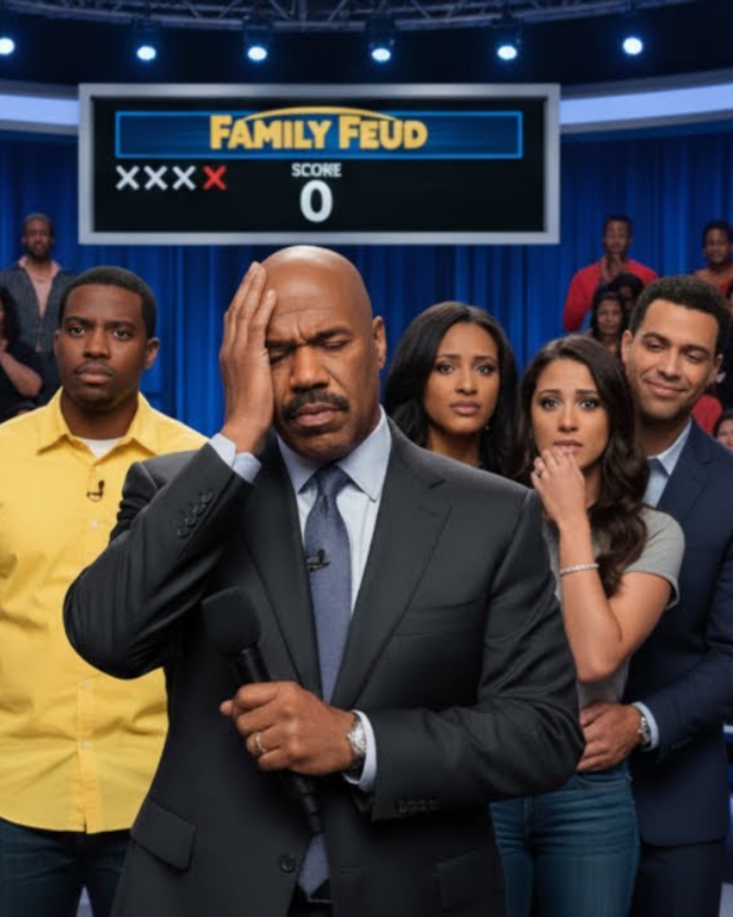 On the right, the Johnsons from Jacksonville, Florida—warm, loud, ready with a comeback for everything. Steve Harvey did his stroll, cufflinks catching stage glow, suit razor-sharp, grin easy. Introductions rolled smooth. The game settled into its rhythm: laughter, guesses, buzzers, applause.