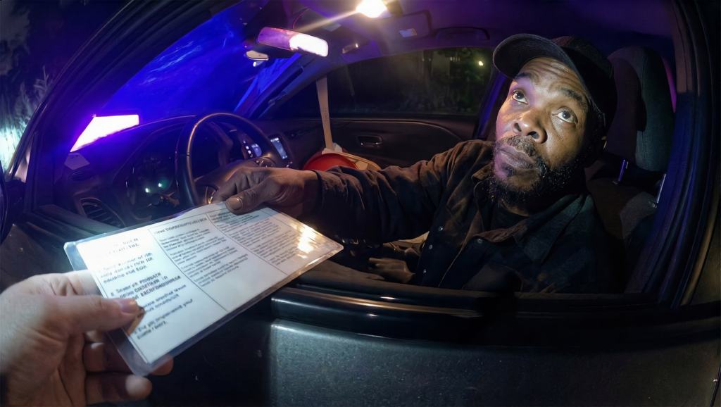 The officer delivered his final warning. “Okay. Now, I’m going to make you exit the vehicle.”