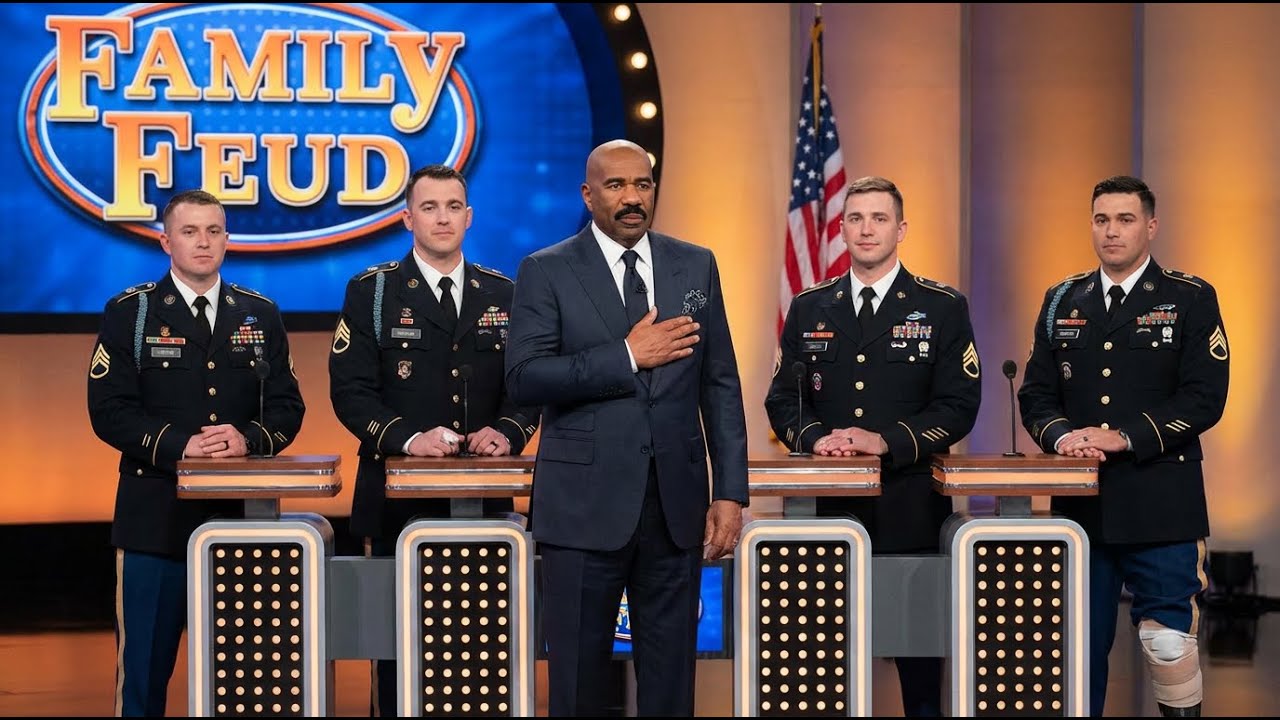 “Welcome to Family Feud,” Steve began, voice warm, but layered with respect. “We have a very special family with us today. These folks represent Wounded Warrior Project, and they’re playing today to raise awareness and funds for America’s wounded veterans.”