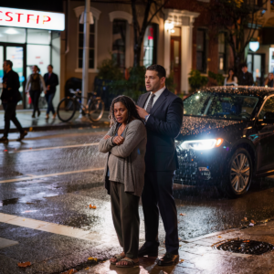 Thrown out in the rain with nothing but worn shoes and a broken heart, she kept walking until a black sedan stopped beside…